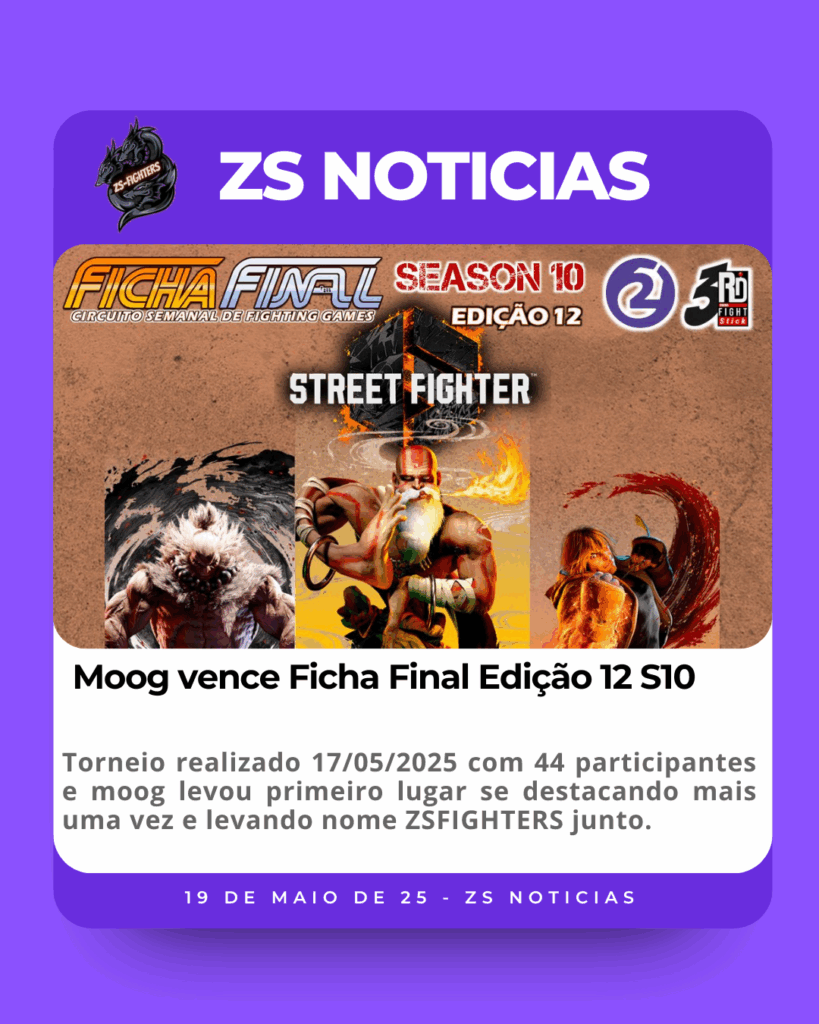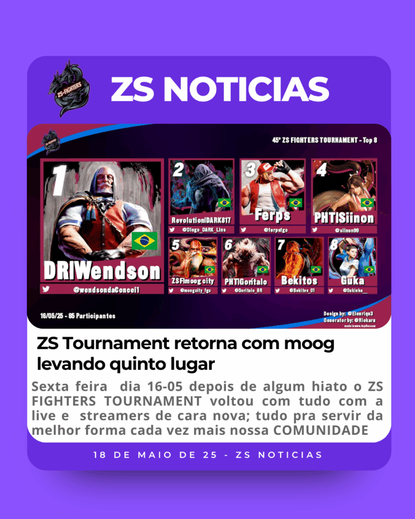 Nami, representando a comunidade ZS FIGHTERS, crava seu nome no TOP 8 do torneio offline Rage Impact 4, realizado em 14/06/25 na região de São…