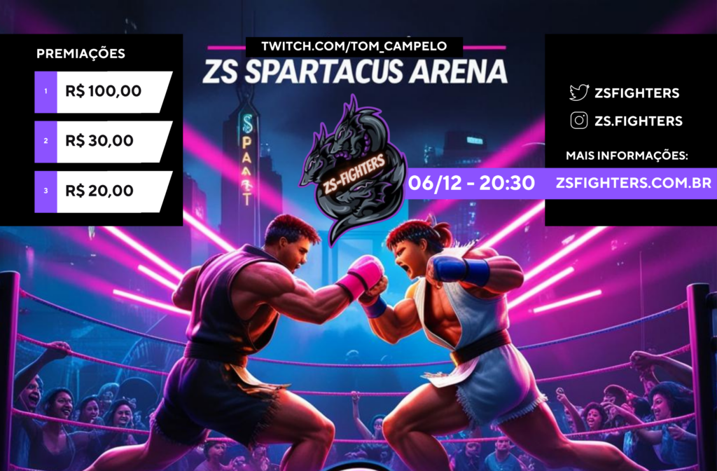 Hoje as 19h acompanhe a ZS-SEGUNDA FIGHT na twitch Tom_Campelo
