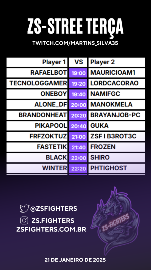 As inscrições para o nosso torneio online estão ABERTAS! Venham enfrentar as maiores feras do klan ZS FIGHTERS e os players mais fortes da…