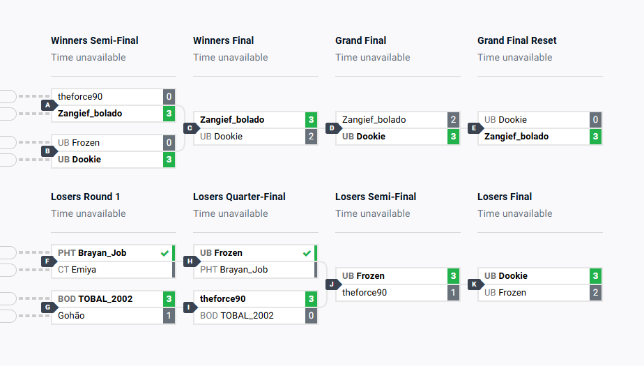 | 2 | UBDookieAlan Pedro | 7 | 2 | 77.78% | Zangief_boladoZangief_bolado |